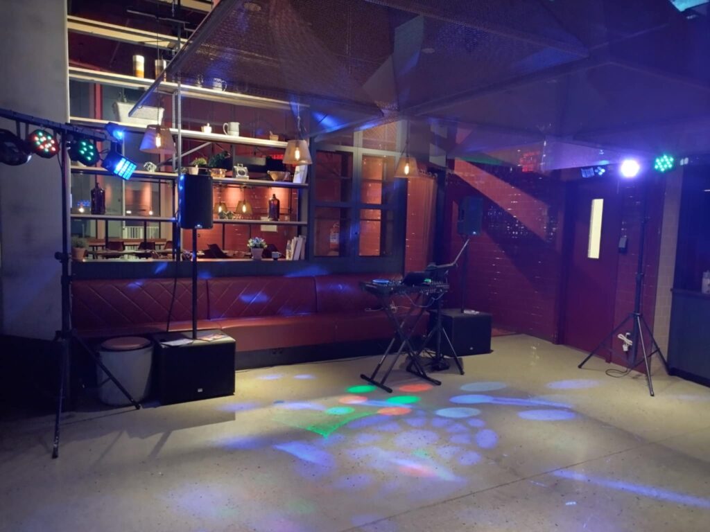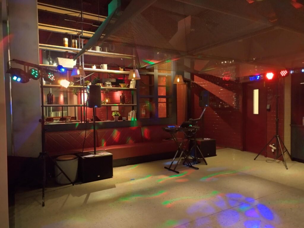 Med det lille X-Stativ, højtalere og 2 x lysstativ, er der masser af lyd og lys til en vild fest til den lyse morgen